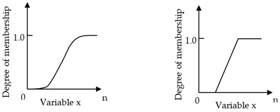 The fuzzy membership function determines the fuzzy logic in the fuzzy rule base. Fuzzy logic is multivalued and deals with degrees of membership and truth. Its value typically ranges from 0 (zero membership/false) to 1 (full membership/true). There are two typical membership functions: smooth curve and linear piecewise function, as shown in Figure 2. The well-known membership functions are triangular, trapezoidal, Gaussian, and sigmoidal [37].