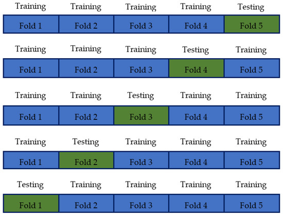 Schematic demonstration of a 5-fold leave-one-out cross-validation process.