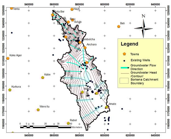 Therefore, understanding groundwater and surface water interactions, hydrological processes, and hydrogeological systems of catchments and their vulnerability to natural stressors are very essential for proper water resource utilization and management []. Particularly, the interaction between groundwater and surface water is crucial in hydrological systems that rely on limited freshwater resources, such as the Borkena River Catchment []. Recently, the integrated management of groundwater (GW) and surface water (SW) resources is growing to meet the social and ecological flow requirements of both water resources. Such integrated GW and SW management requires information concerning the effects of groundwater on surface water systems and vice versa []. GW and SW interactions are often studied using models, which help to establish locations, characterize aquifer boundaries, and assess the amount of water within the systems, including recharge to the groundwater aquifer and flow to surface water []. These models are used to calculate the rate and direction of the movement of groundwater through aquifers and confining units in the subsurface, the exchange of surface and groundwater between aquifers, sources, and sinks, including other groundwater infusion and removal from an aquifer.