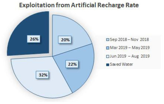The artificial recharge plan for the Yasouj aquifer will be implemented with the main goal of increasing the amount of exploited groundwater in the three regions: Gargada, Sheikh Khaje, and Naserabad (Figure 1). According to the previously conducted studies, the artificial recharge showed a decreased trend during the last decades. Here, the annual average amount of artificial recharge in the Yasouj aquifer is considered equal to 1 MCM per year. Owing to the high volume of exploitation in the three designated periods (September 2018–November 2018, March 2019–May 2019, and June 2019–August 2019), exploiting recharge water is allowed during these seasons [2,32]. Based on initial data, groundwater exploitation in the three determined periods is equal to 8.08 MCM and after artificial recharge, it will be 9.08 MCM.