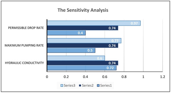 Results of the sensitivity analysis. The optimal exploitation under artificial recharge (Series 1) after a reduction in the values of the variables, (Series 2) without changes in the values of the variables, and (Series 3) after an increase in the values of the variables.