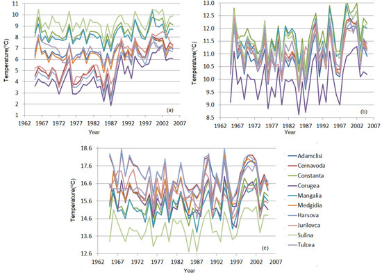 - Bărbulescu, A. On the Regional Temperature Series Evolution in the South-Eastern Part of Romania. Appl. Sci. 2023, 13, 3904. [Google Scholar] [CrossRef]