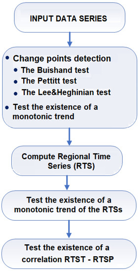 - Determine the RTS of the minimum, maximum, and total precipitation series, denoted by RTSPmin, RTSPmax, and RTSPtot, respectively.
