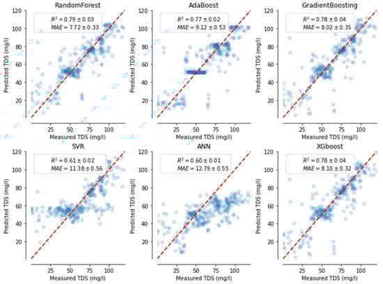 Model performance using a test set for TDS (mg/L) using six ML methods.