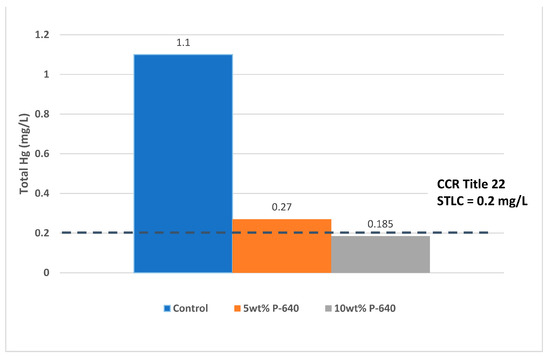 Sampling and analysis of AOC-X calcines immediately after treatment with MercLok at 10 wt% showed that leachable Hg reduced below the CCR Title 22 limit of 0.2 mg/L (Figure 7).
