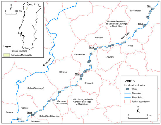 - Vieira, A.; Costa, F.; Martins, R. Inventariação e Avaliação Ambiental de Obstáculos No Rio Selho Para a Decisão de Remoção e Valorização Da Linha de Água; Centro de Estudos em Comunicação e Sociedade: Braga, Portugal; Laboratório da Paisagem: Guimarães, Portuagl, 2021. [Google Scholar]