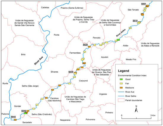 - Costa, F.S. PRIOS-Projeto de Reabilitação Do Rio Selho: Um Exemplo de Intervenção Na Zona Urbana de Guimarães. In Proceedings of the Actas do II Congresso Internacional de Engenharia Civil e Território “Água, Cultura e Sociedade”, 20–21 May 2013; Colegio de Ingenieros de Caminos, Canales y Puertos de Galicia: Vigo, Spain, 2013; pp. 495–506. [Google Scholar]