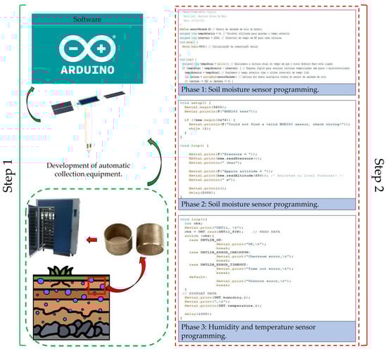 Soil collection flowchart, construction, and programming of the soil moisture sensor.