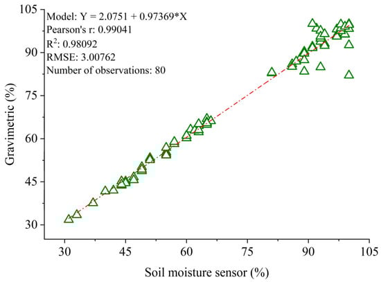 The accuracy of the soil moisture sensor was assessed based on the gravimetric method, with readings and calibration performed using the standard oven-drying method through linear regressions.