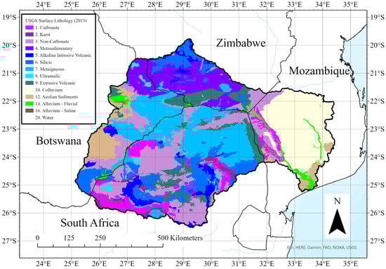 Borehole data were provided by Mxolisi Mukhawana from South Africa’s Department of Water and Sanitation. Auxiliary shapefiles were obtained from the Southern African Development Community (SDAC) portal. The CSIR document [] was provided by Peter Qwist-Hoffmann.