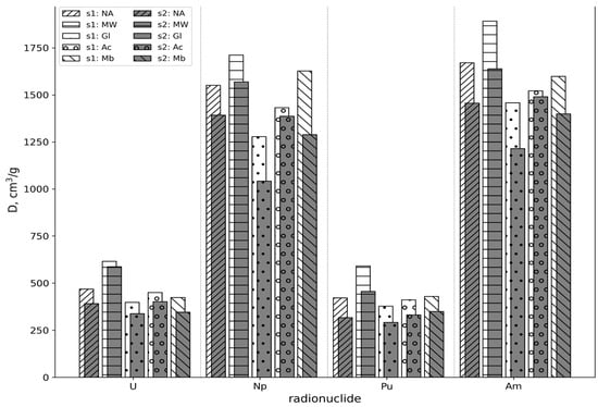 - Andryushchenko, N.D.; Safonov, A.V.; Babich, T.L.; Ivanov, P.V.; Konevnik, Y.V.; Kondrashova, A.A.; Proshin, I.M.; Zakharova, E.V. Sorption characteristics of materials of the filtration barrier in upper aquifers contaminated with radionuclides. Radiochemistry 2017, 59, 414–424. [Google Scholar] [CrossRef]