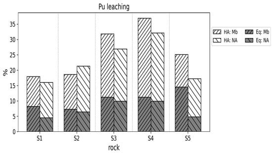 - In the case of the plutonium in the samples with a high aluminum content, a minor increase in leaching with pre-treatment was observed in the presence of HA. The proportion of plutonium leached without pre-treatment in this case constituted 70% to 80% of the total.
