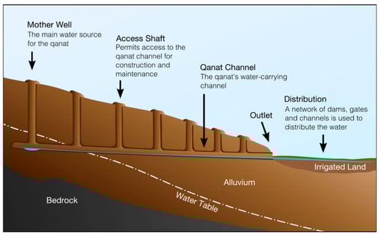 Schematic vertical cross-section of qanat construction (adapted from [3]).