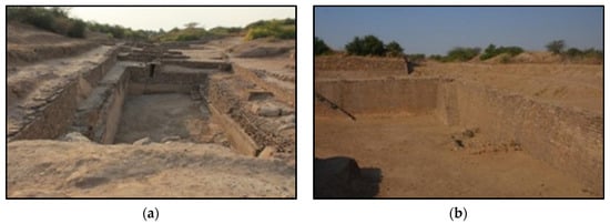 Underground tunnels and reservoirs in the Harappan city of Dholavira: (a) the southern and (b) the eastern views [28].
