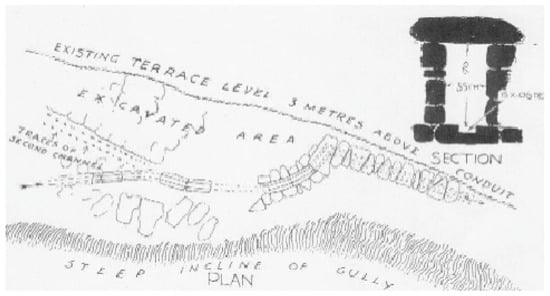 It should be noticed that the water channel used for water transfer was constructed at the bottom of the rock-cut tunnel shown in Figure 8a. The rock-cut tunnel was a working gallery from which the workers could lay the lower-lying terracotta conduit, which still functioned in the time of Herodotus. Later, presumably due to blockage of the pipes, the pipeline was broken open and the water allowed to overflow into the rock-cut channel.