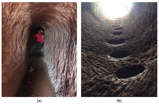 Qanat-mode tunnels and shafts: (a) tunnel and (b) vertical access and building shaft with niches for working crews, Tiermes, Spain (Photos Cees Passchier).