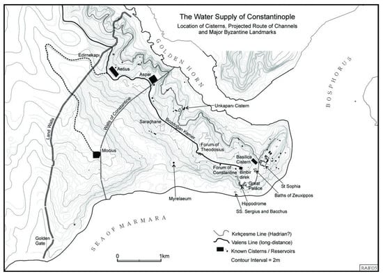 - Crow, J. The Water Supply System of Byzantine Constantinople. A History of Istanbul. 2023. Available online: https://istanbultarihi.ist/554-the-water-supply-of-byzantine-constantinople (accessed on 21 August 2023).