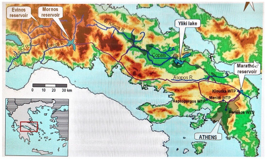 - Xenos, D.; Passios, I.; Georgiades, S.; Parlis, E.; Koutsoyiannis, D. Water demand management and the Athens water supply. In Water Quality Technologies and Management in Bulgaria, Proceedings of the 7th BNAWQ Scientific and Practical Conference, Sofia, Bulgaria, 20–22 February 2002; Bulgarian National Association on Water Quality: Sofia, Bulgaria, 2002; pp. 44–50. [Google Scholar] [CrossRef]