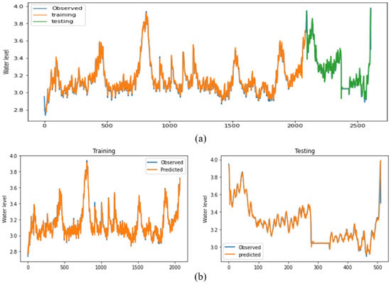 (a) Combined training and testing phase of the LSTM model; (b) Separated training and testing phase of the LSTM model.