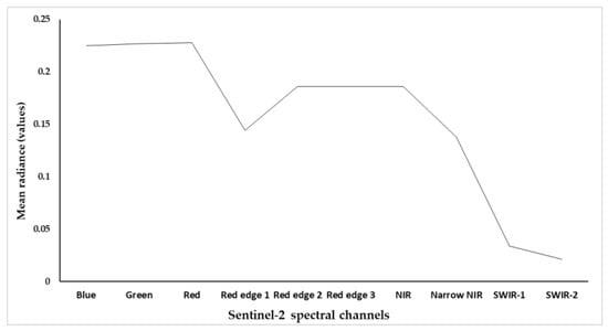 3.2. Mean Radiance Values of Various Sentinel-2 Spectral Channels