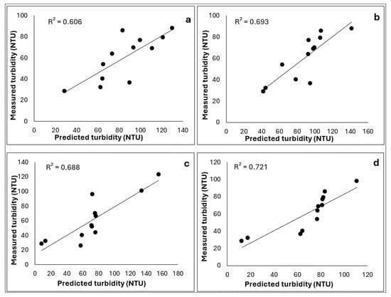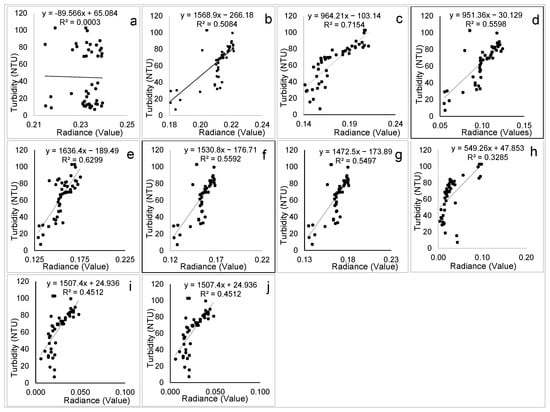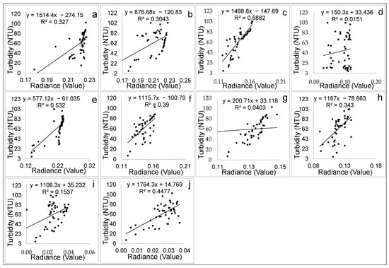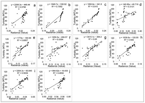 3.4. Relationship Establishment between Sentinel-2 Spectral Radiance Values and Turbidity Concentration