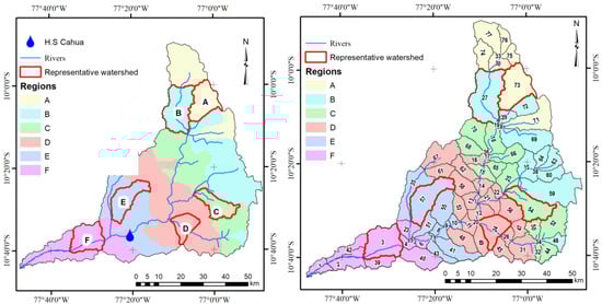 Regionalization of watersheds in the Pativilca Basin and selection of representative watersheds.
