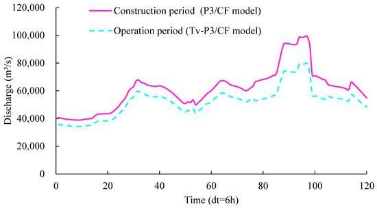 This module mainly derives the design flood hydrograph, analyzes the hydroelectric benefits, and assesses the flood control risks of the TGR. In the reservoir operation period, the design flood hydrograph of the TGR is derived using the peak and volume amplitude method [3,4] based on the design flood results. Then, the FLWL in the operation period is determined through an iterative calculation approach [74], which ensures that flood prevention standards remain unchanged [75].