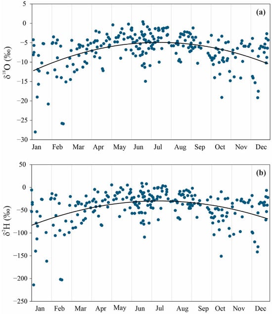 3.2. Changes in δ2H vs. δ18O Throughout the Study Periods