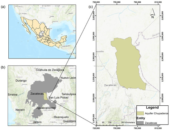 - CONAGUA CONAGUA/Acuíferos Zacatecas. Available online: https://sigagis.conagua.gob.mx/gas1/sections/Edos/zacatecas/zacatecas.html (accessed on 15 March 2024).