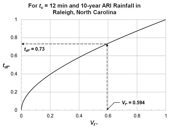 Graphical solution of tdf* for a catchment with tc = 12 min in Raleigh, North Carolina.