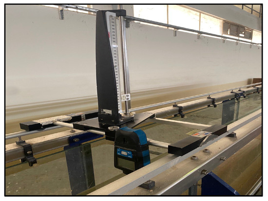 Point gauge and laser meter were positioned on the flume side walls during the measurements.
