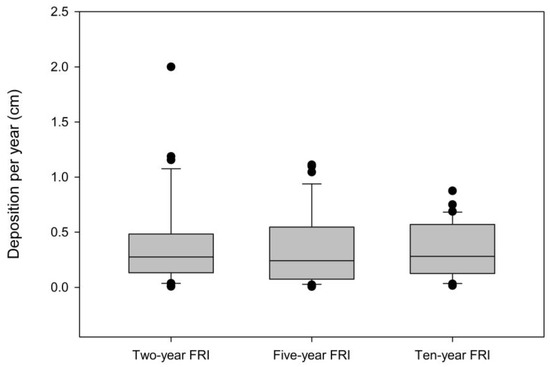 Annual deposition rate in the two-, five-, and ten-year FRIs.