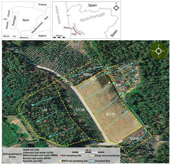 The study site encompasses the Fojo coal mine waste pile, and the surrounding area and is located in the Pejão mining area, Douro Coalfield, NW Portugal (