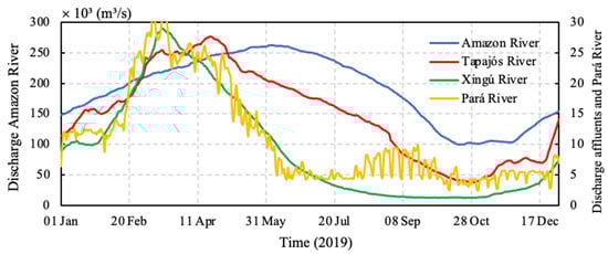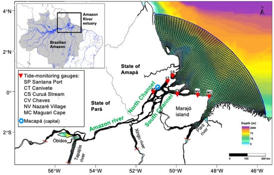 - Prestes, Y.O.; Borba, T.A.; da Silva, A.C.; Rollnic, M. A discharge stationary model for the Pará-Amazon estuarine system. J. Hydrol. Reg. Stud. 2020, 28, 100668. [Google Scholar] [CrossRef]