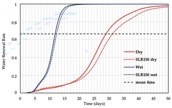3.2. Water Transport Time Scenarios along the Channel