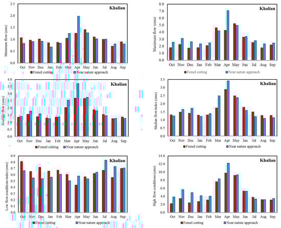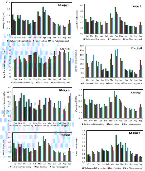 Our study assumes that various forest management operations will exert diverse effects on different hydrological components of streamflow. Furthermore, the impact of these operations on flow characteristics may vary from minimal to substantial. Consequently, we compared and evaluated changes in hydrological indices of flow during three distinct forest management periods, namely Shelterwood/clear cutting, Femel cutting, and the Near Nature approach.