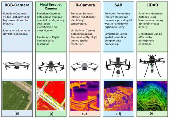- Sun, J.; Yuan, G.; Song, L.; Zhang, H. Unmanned Aerial Vehicles (UAVs) in Landslide Investigation and Monitoring: A Review. Drones 2024, 8, 30. [Google Scholar] [CrossRef]