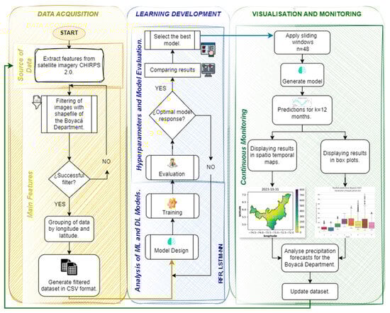 1], persisted until late 2022 and early 2023. This would mark the first “triple episode” La Niña of this century, spanning three consecutive northern hemisphere winters, corresponding to summer in the southern hemisphere. This project aims to implement a methodology to develop predictive models of total monthly precipitation using new cutting-edge technologies, such as deep learning, for water supply consumption in the department of Boyacá.