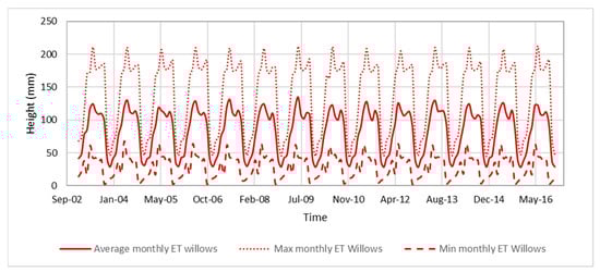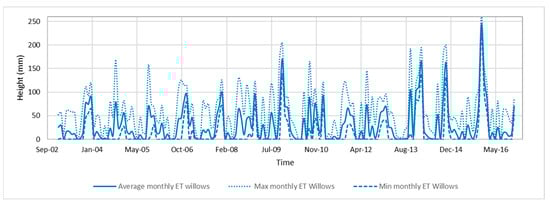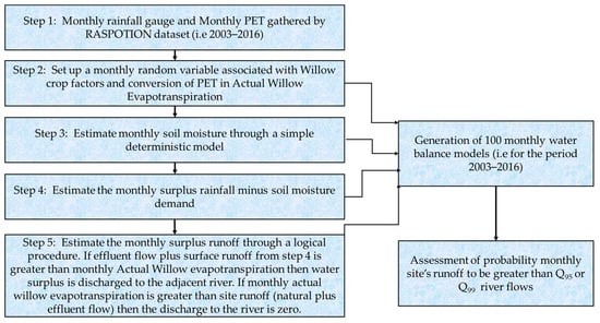 - A challenging problem in environmental engineering is the lack of long-term observations of several parameters related to a specific geoscience task. In this case, the limited information of crop monthly variation is crucial for developing a reliable modeling approach. Thus, a probabilistic Monte Carlo approach has been introduced using as random variables the monthly crop willow factors based on previous surveys in Ireland. The high uncertainty nature of these factors and their strong dependence on local meteorological conditions proves that the role of probabilistic modeling approach is necessary even though in this attempt, the probabilistic model did not consider the stochastic nature of the other meteorological variables such as rainfall and potential evapotranspiration. Future models are encouraged to use full stochastic frameworks and freely available integrated computational tools [33,34,35]. In this study, special attention has been given to Willow ET, which is a factor of local meteorological conditions, willow species, and willow management. Following a global review of 57 scientific studies across 16 countries [16] there is a clear linear regression of the water supply and Willow ET rate. The same review concludes that a critical threshold of plant density is 5 plants/m2 since for higher plant densities, ET rates are not linearly correlated.