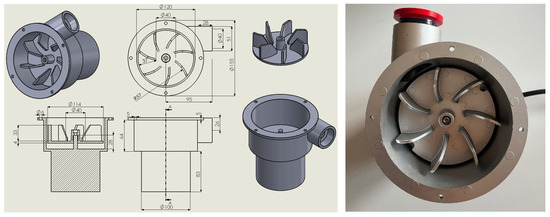 To ensure a watertight seal between the casing and the turbine, a rubber gasket was incorporated. This gasket prevents possible water leaks, guaranteeing the system’s efficiency and reliability. The cover and the turbine casing were connected using M6 screws, along with their respective nuts and washers. This fastening method provides a robust and easy-to-maintain connection, allowing for easy disassembly for maintenance or inspection tasks.
