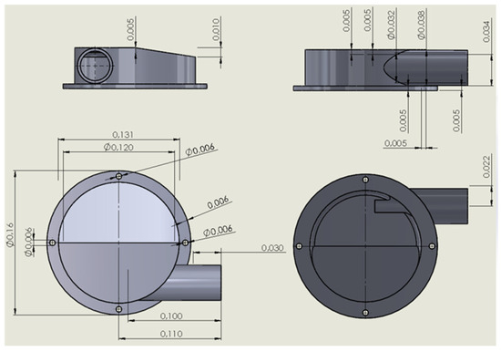 A detailed plan view of the 3D-printed component is shown in Figure 6. This schematic includes all critical dimensions and annotations, serving as a blueprint for the design and providing exact measurements and specifications needed for replication or further modification. It plays a crucial role in documenting the design process and ensuring consistency in manufacturing.