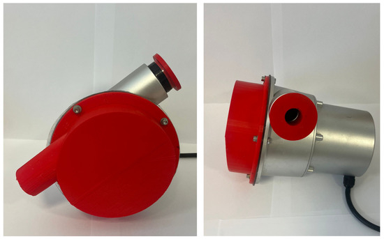 The final design of the 3D-printed turbine cover and outlet channel are shown in Figure 7. These images illustrate the completed component, highlighting the detailed design and its smooth integration with the existing turbine. Figure 7 displays the final 3D-printed cover and outlet channel from different angles, showcasing the design’s inclusion of a flange for secure attachment to the turbine body and a channel to direct the water flow effectively. The novel design and integration of the 3D-printed cover and outlet channel significantly enhanced the functionality of the turbine within the greenhouse irrigation system. This modification not only ensures efficient irrigation but also demonstrates the potential of using 3D printing technology for customized solutions in agricultural applications.