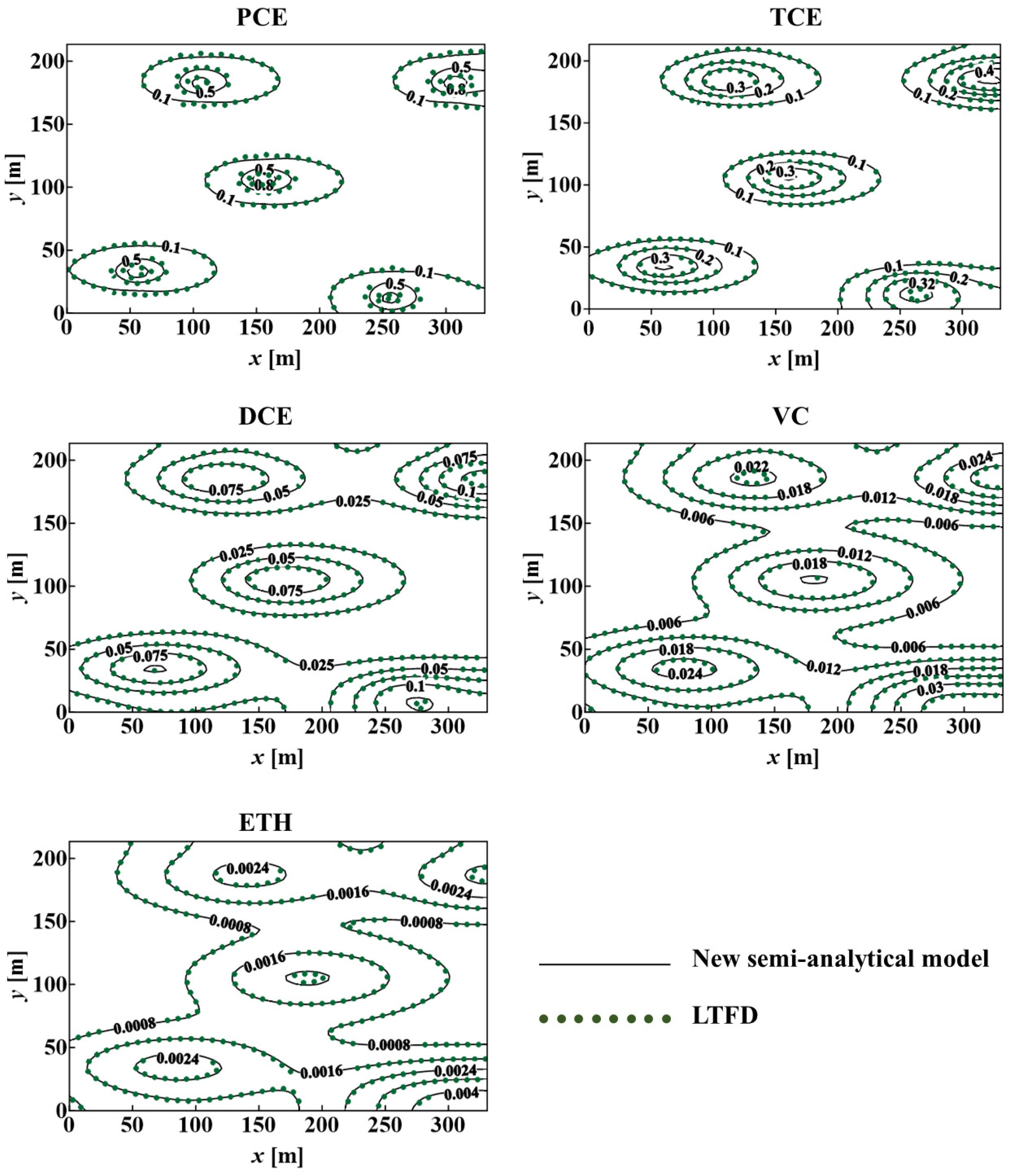 - Carr, E. Generalized semi-analytical solution for coupled multispecies advection-dispersion equations in multilayer porous media. Appl. Math. Model. 2021, 94, 87–97. [Google Scholar] [CrossRef]