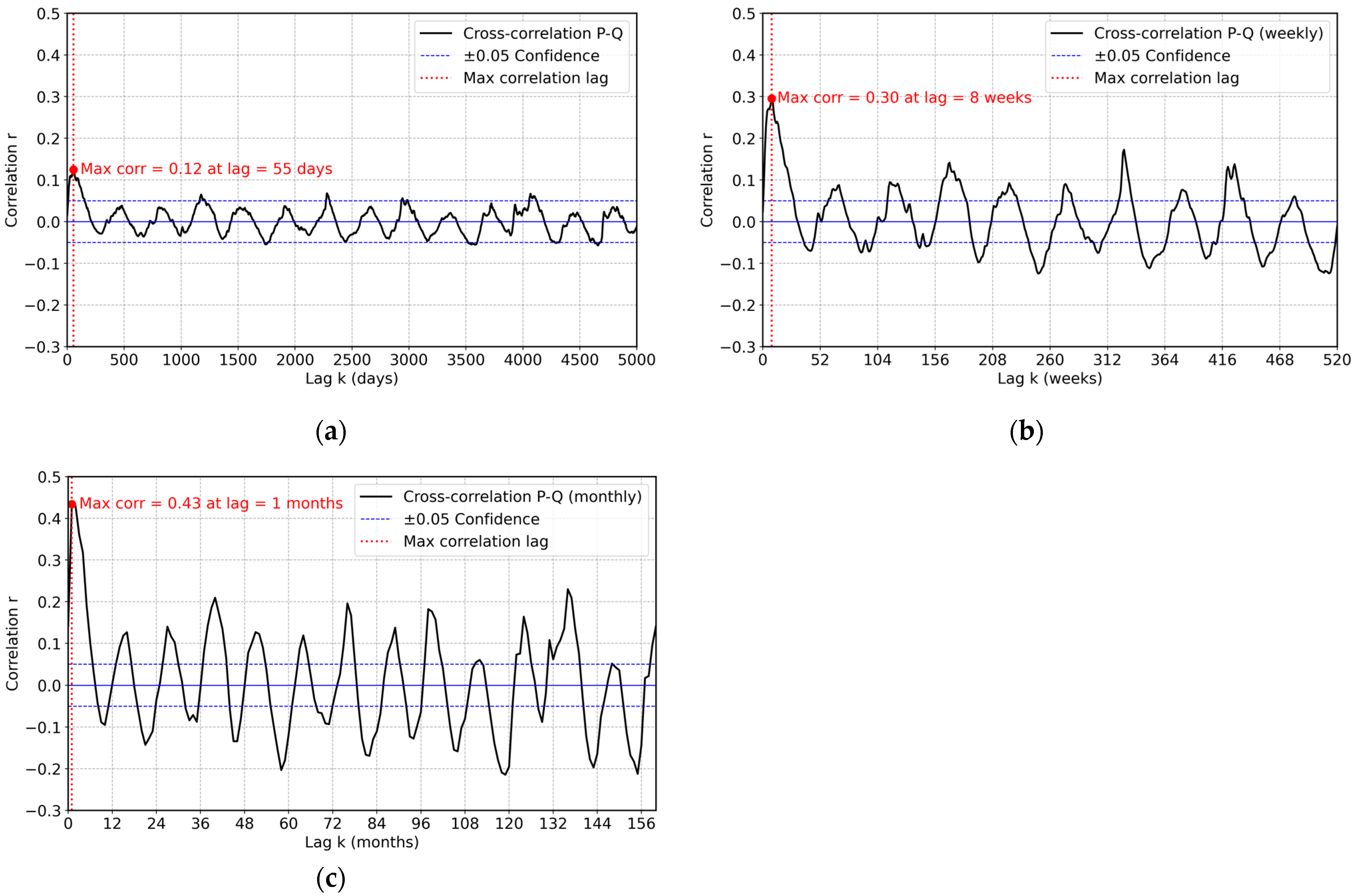 Temporal Scale | Lag with High Cross-Correlation Coefficient r (Days) |