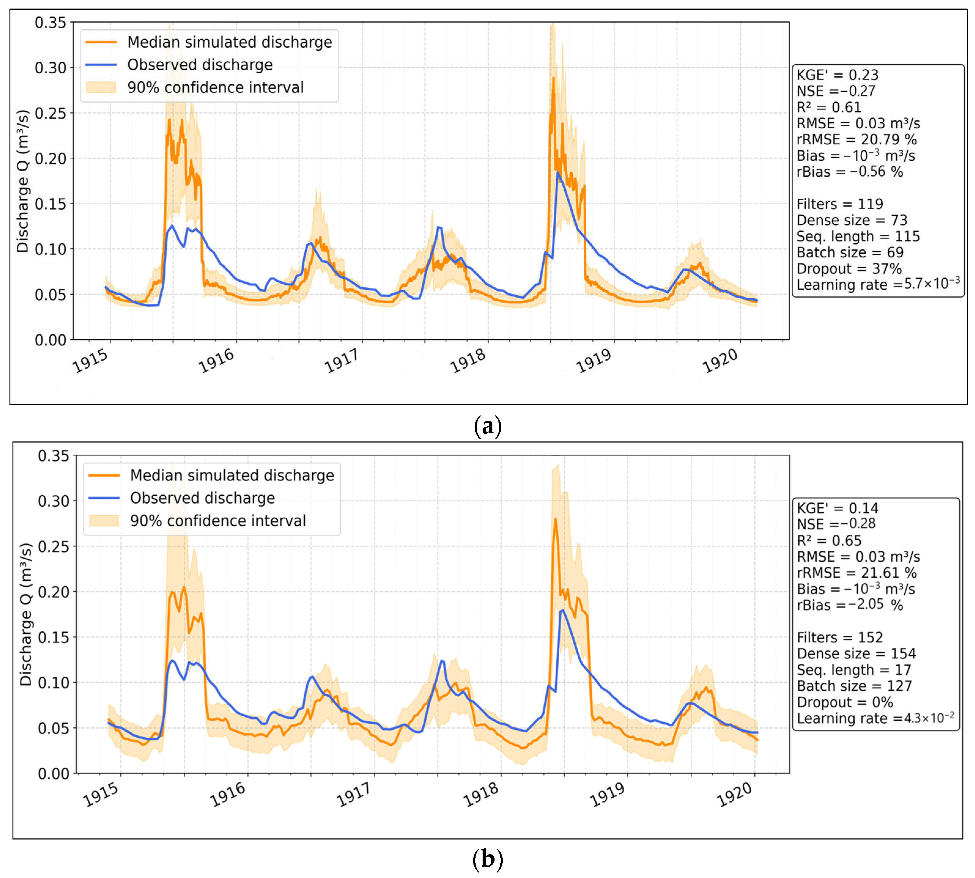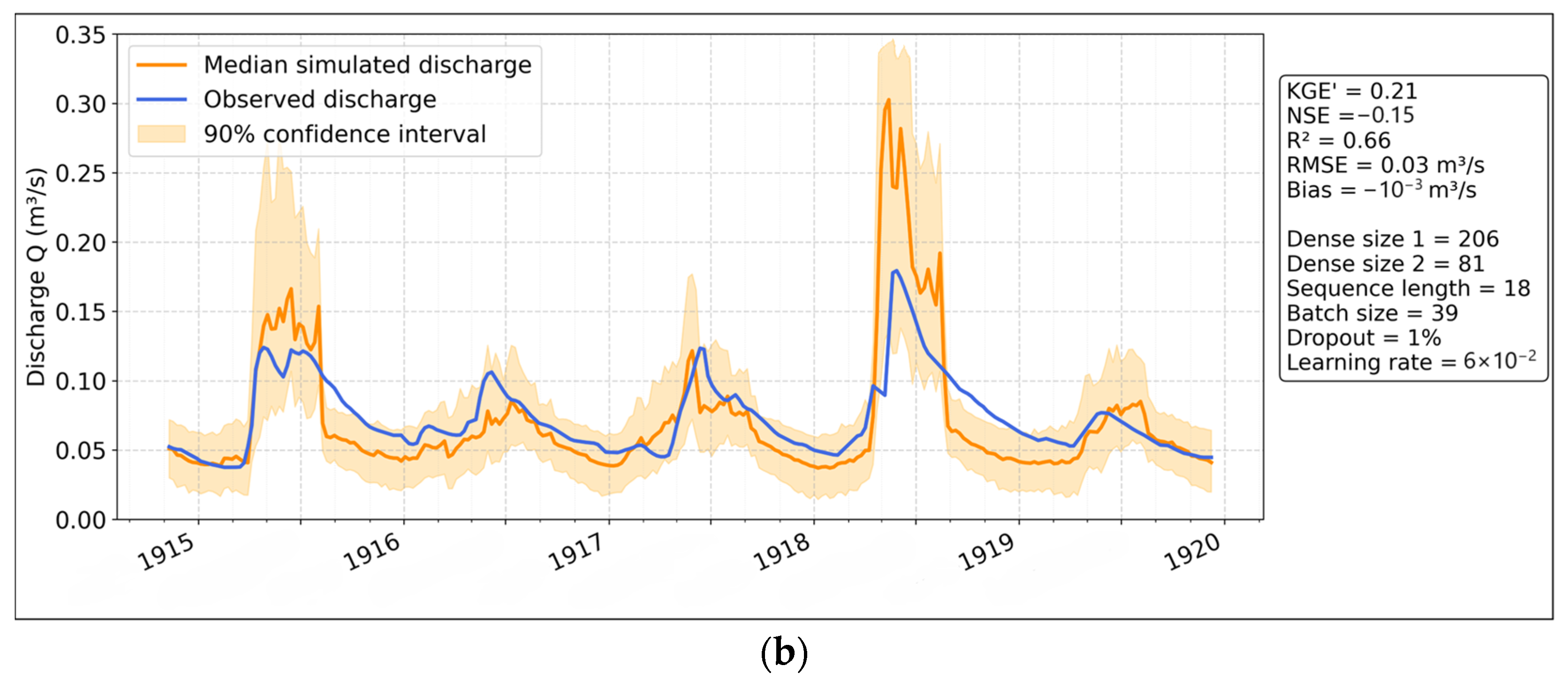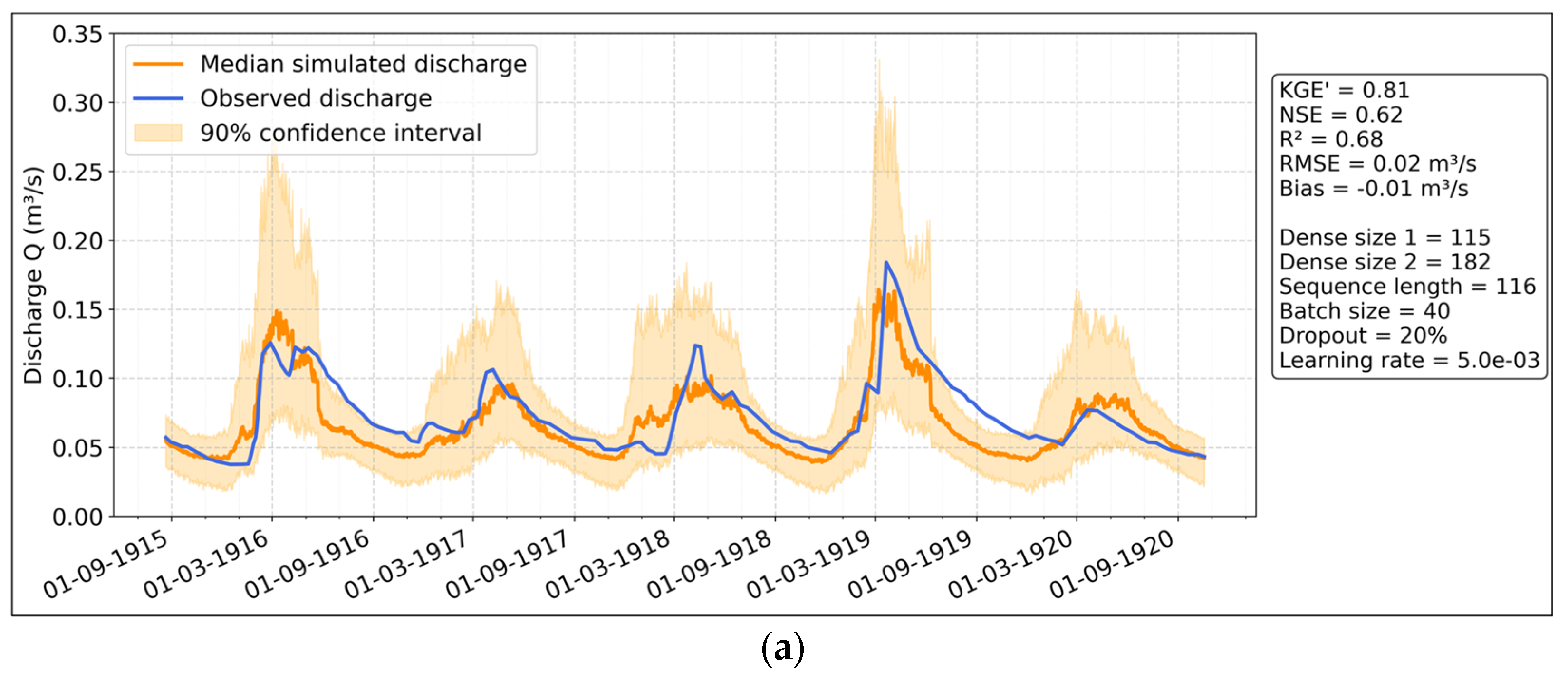 - Kratzert, F.; Klotz, D.; Herrnegger, M.; Sampson, A.K.; Hochreiter, S.; Nearing, G.S. Toward Improved Predictions in Ungauged Basins: Exploiting the Power of Machine Learning. Water Resour. Res. 2019, 55, 11344–11354. [Google Scholar] [CrossRef]