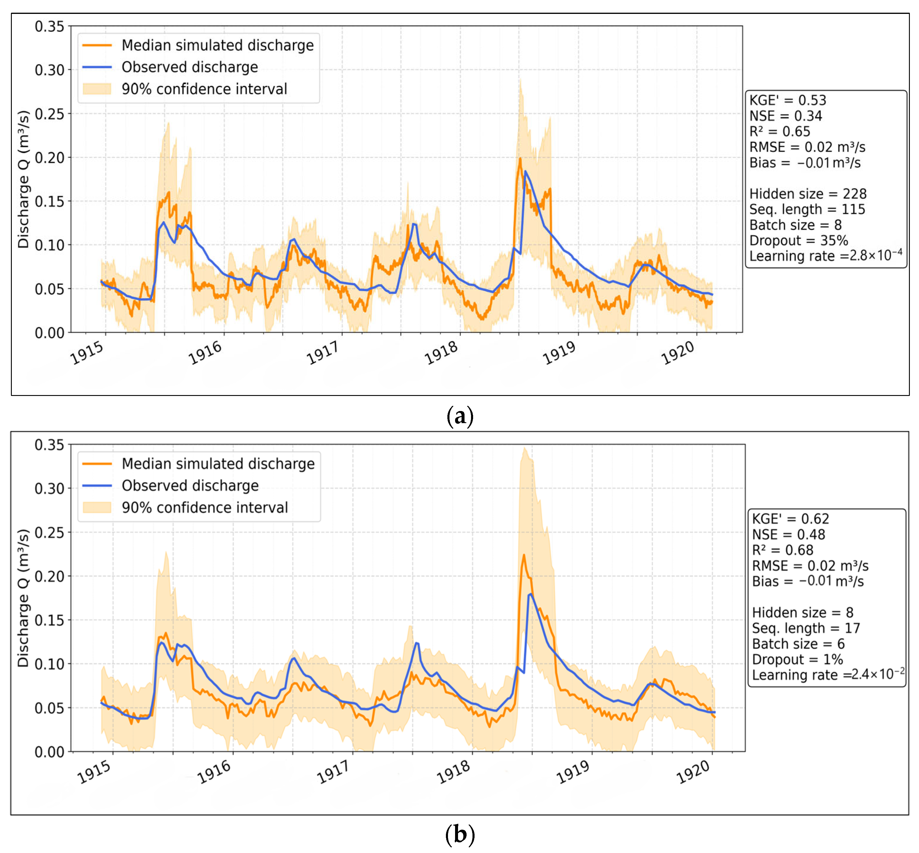 - Feng, D.; Fang, K.; Shen, C. Enhancing Streamflow Forecast and Extracting Insights Using Long-Short Term Memory Networks With Data Integration at Continental Scales. Water Resour. Res. 2020, 56, e2019WR026793. [Google Scholar] [CrossRef]