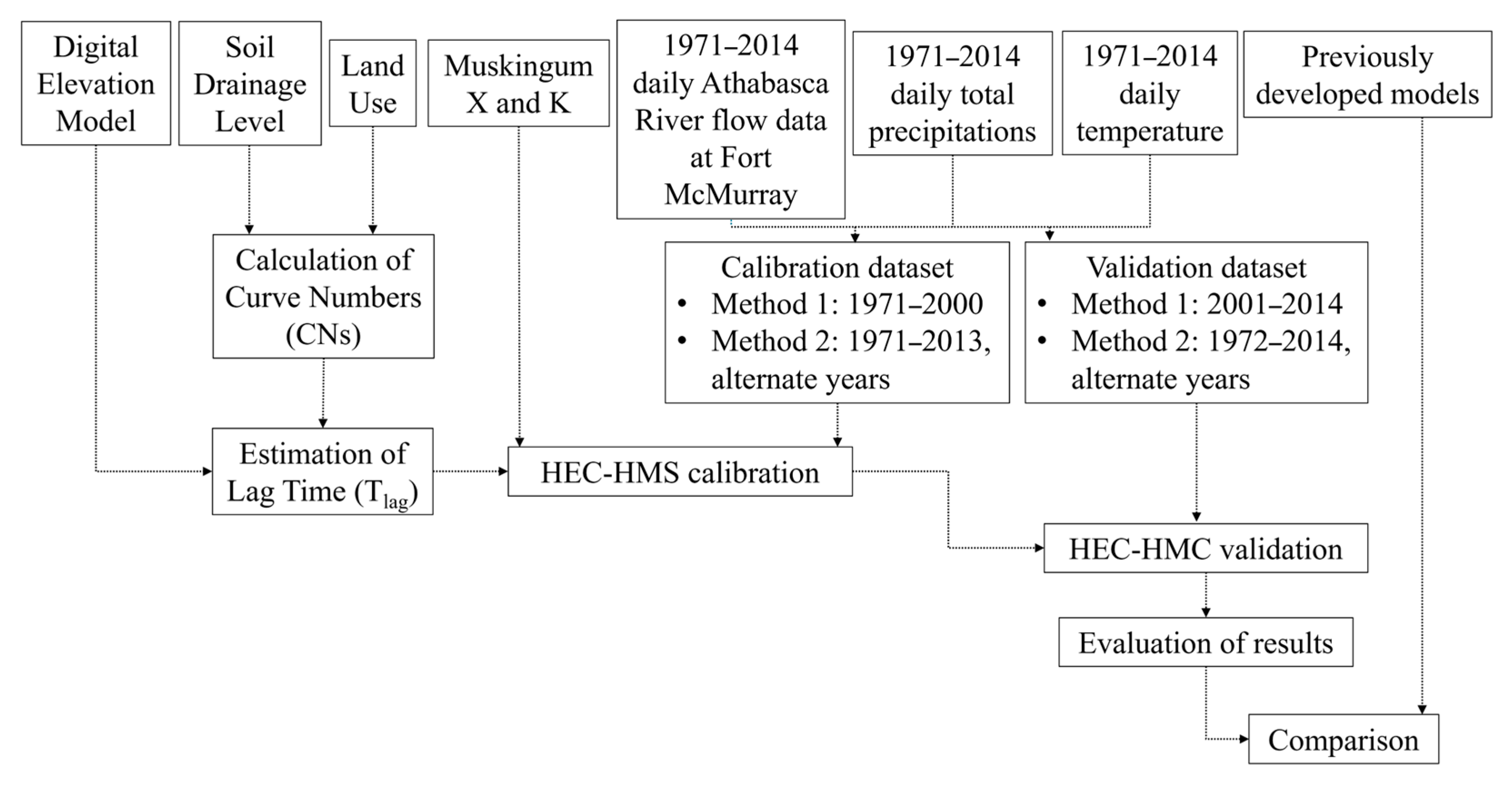 - Applying the HEC-HMS (Hydrologic Engineering Center-Hydrologic Modeling System) to forecast the Athabasca River flow at Fort McMurray, particularly under cold-weather conditions;