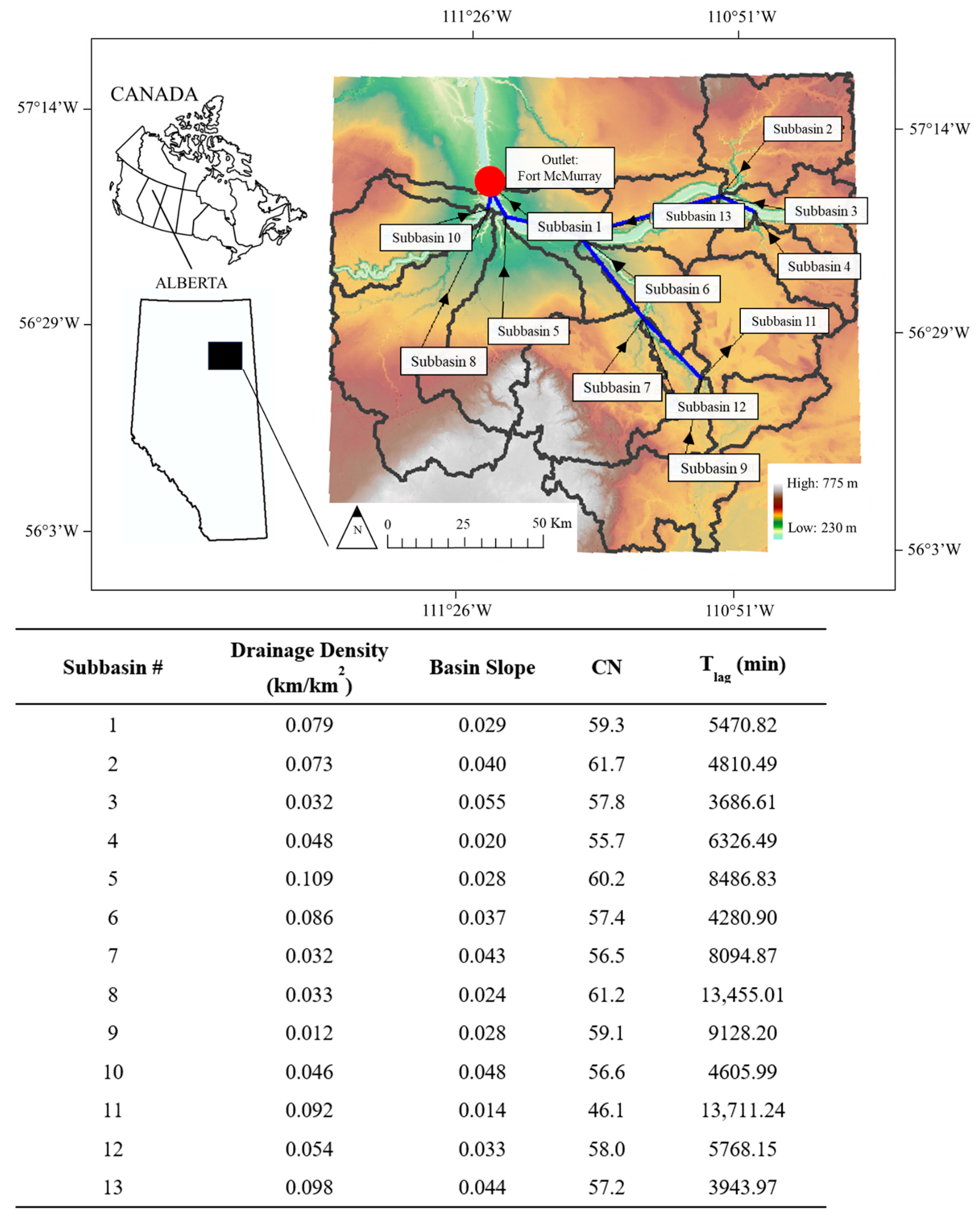 - Hwang, H.-T.; Park, Y.-J.; Sudicky, E.A.; Berg, S.J.; McLaughlin, R.; Jones, J.P. Understanding the Water Balance Paradox in the Athabasca River Basin, Canada. Hydrol. Process. 2018, 32, 729–746. [Google Scholar] [CrossRef]