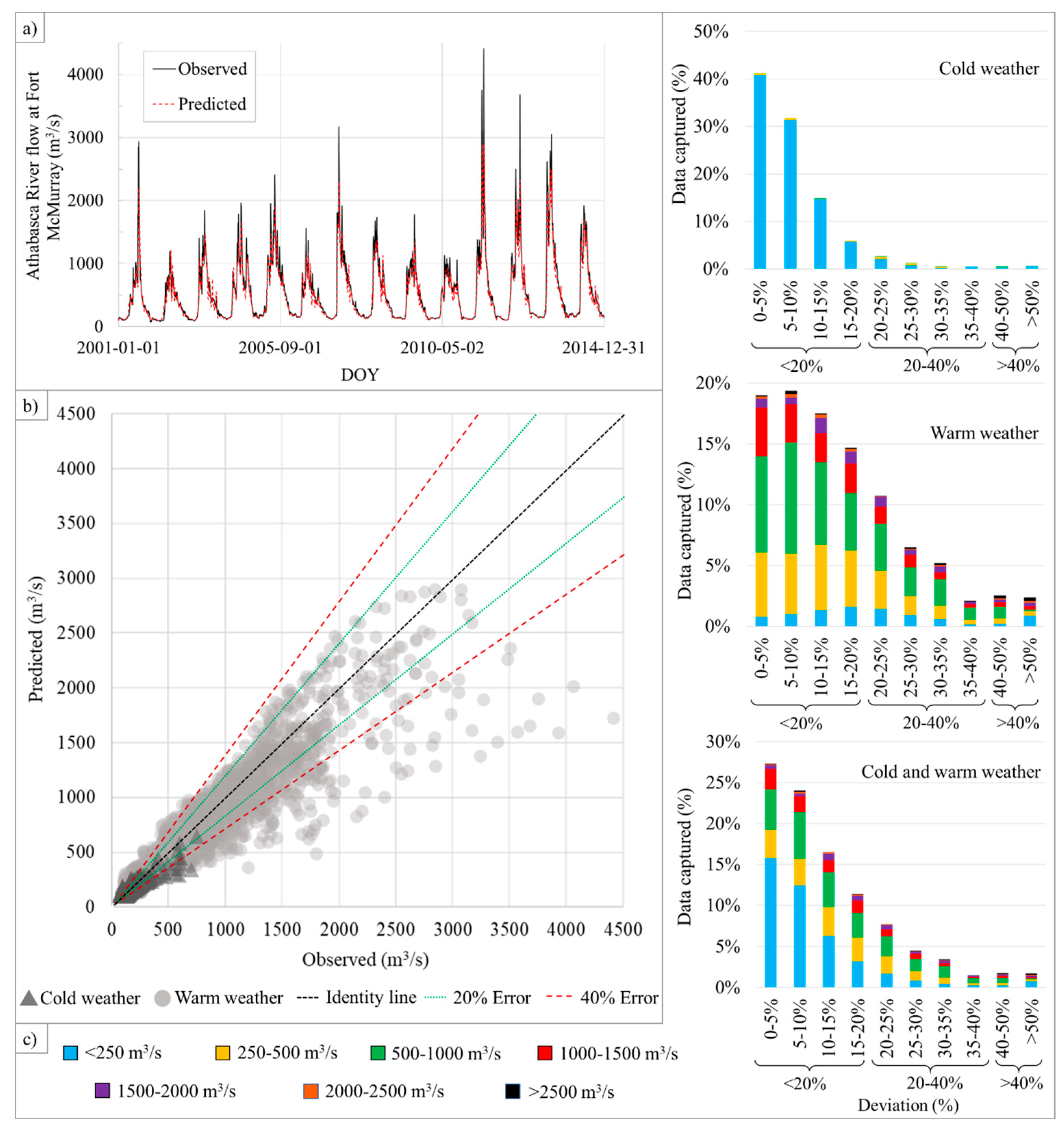 - Veiga, V.B.; Hassan, Q.K.; He, J. Development of Flow Forecasting Models in the Bow River at Calgary, Alberta, Canada. Water 2014, 7, 99–115. [Google Scholar] [CrossRef]