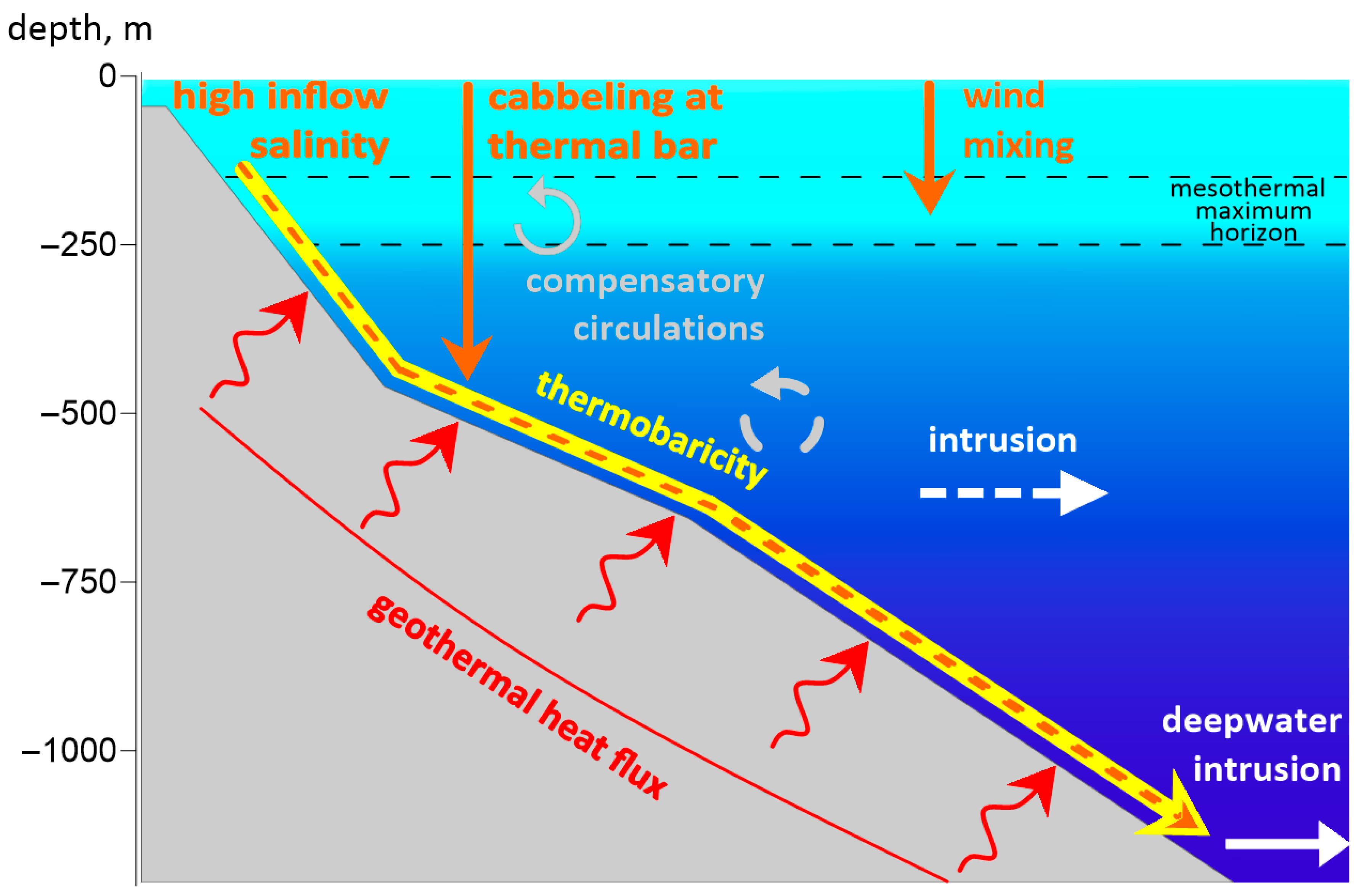 - Tributary mineralization and/or geothermal heating (up to maximum depths).